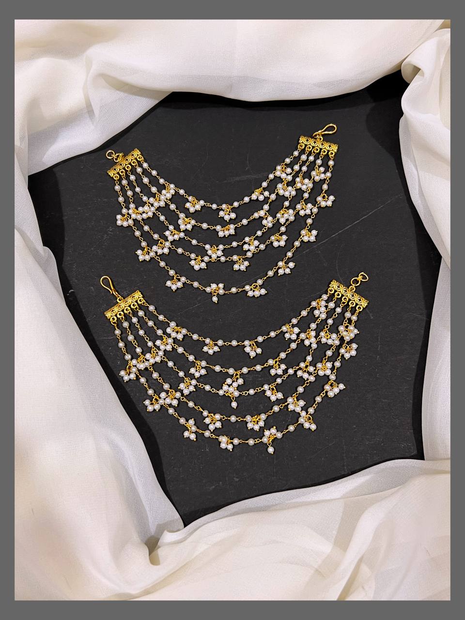 This elegant 5-layer white pearl Matilu in Kundan showcases timeless craftsmanship and delicate beauty. Each layer of lustrous pearls is carefully arranged to enhance the intricate Kundan work, making it a perfect accessory for special occasions. Its classic design adds a graceful touch to any outfit, offering both sophistication and charm. Ideal for those who appreciate traditional artistry with a refined finish.