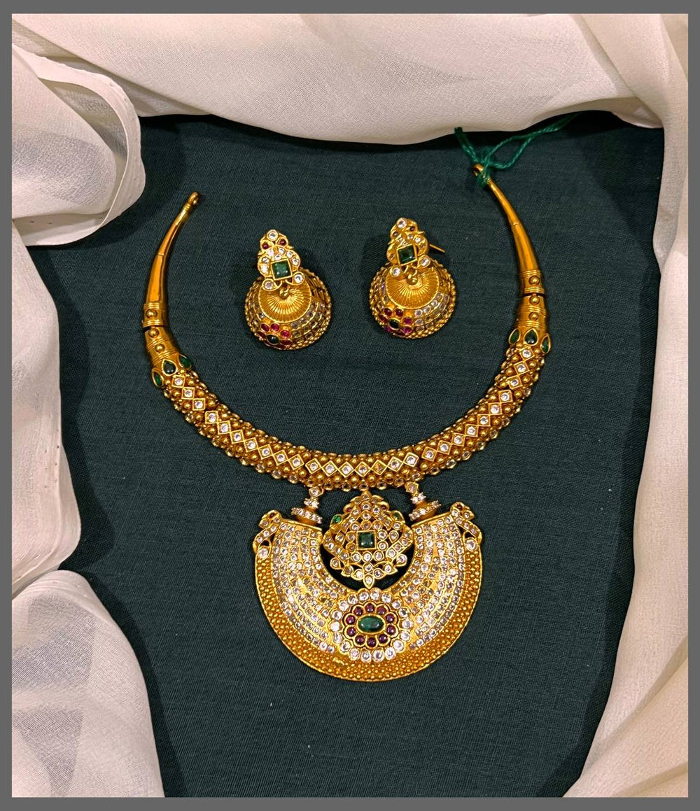 Embrace timeless elegance with this exquisite Antic Kante adorned with a richly detailed Nakshi pendant. This traditional piece celebrates intricate craftsmanship, featuring ornamental work that reflects authentic artisanal heritage. The pendant's elaborate design showcases the skilled artistry of master craftsmen, making it a meaningful addition to your jewelry collection. Perfect for special occasions or everyday wear, this piece connects you to cultural traditions while offering versatile styling options. A treasured investment in quality and beauty.