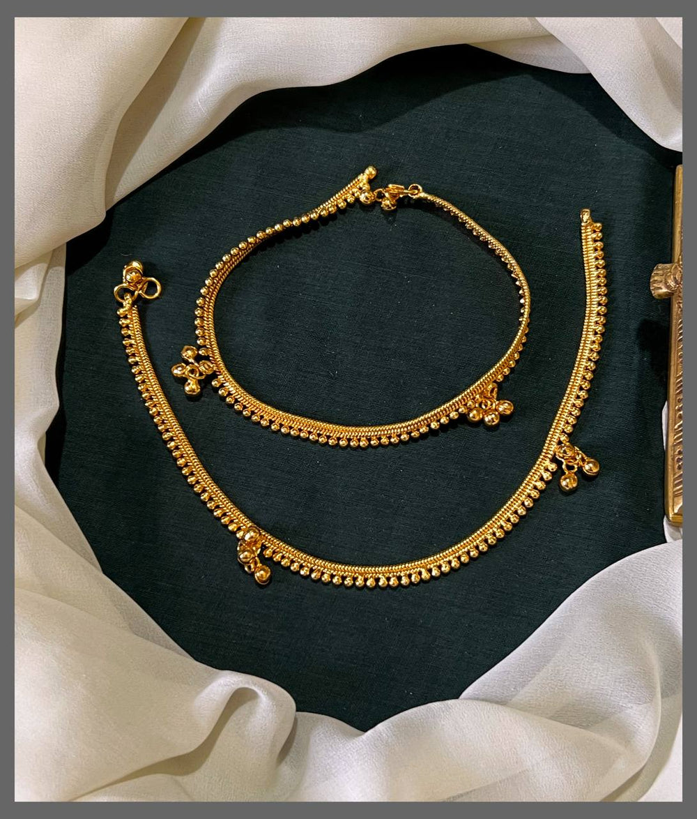 Elevate your traditional ensemble with this exquisite Antique Gold Payal, a timeless ankle ornament that embodies classical Indian craftsmanship. Crafted with meticulous attention to detail, this payal features warm antique gold tones that complement both festive and everyday wear. The intricate design showcases authentic jewelry-making techniques, making it an ideal choice for those who appreciate heritage pieces. Perfect for weddings, celebrations, or adding an elegant touch to your personal collection, this payal represents the perfect blend of tradition and sophistication.