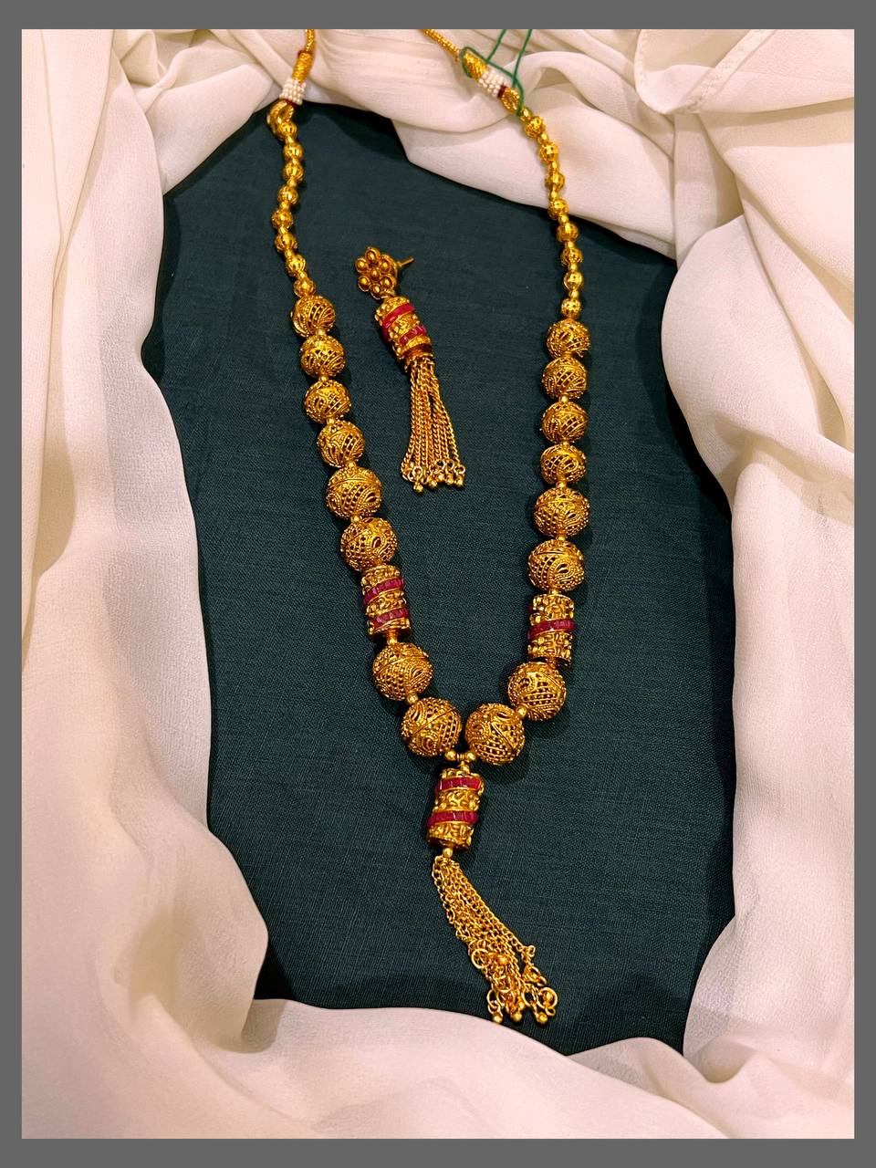 Embrace timeless elegance with this exquisite Antique Golden Pearl Haram. Crafted with meticulous attention to detail, this traditional piece features lustrous pearls set in warm antique gold, creating a sophisticated look that complements both classic and contemporary styles. Perfect for weddings, festivals, and special occasions, this haram adds grace and refinement to your jewelry collection. The rich golden finish beautifully enhances the pearl's natural radiance, making it a versatile accessory that celebrates your personal style with understated luxury.