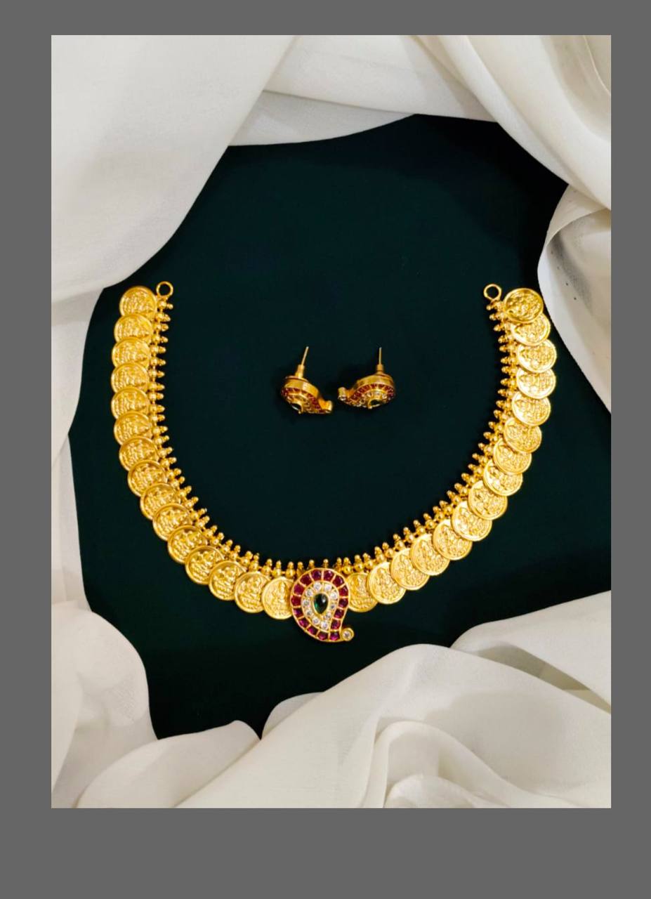 Antique finish kaasu neck piece with kempu mango pendant and pair of mango earrings