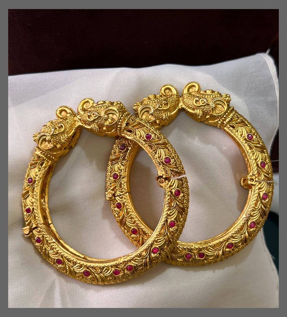 Elevate your traditional ensemble with this exquisite antique kada-style bangle, meticulously crafted with kundan work. This timeless piece showcases intricate stone-setting techniques that reflect centuries of Indian jewelry artistry. The kada's robust design offers both comfort and durability for everyday wear, while the kundan embellishments add a touch of regal sophistication. Perfect for festive occasions or as a cherished addition to your heirloom collection, this bangle seamlessly blends heritage craftsmanship with enduring elegance.