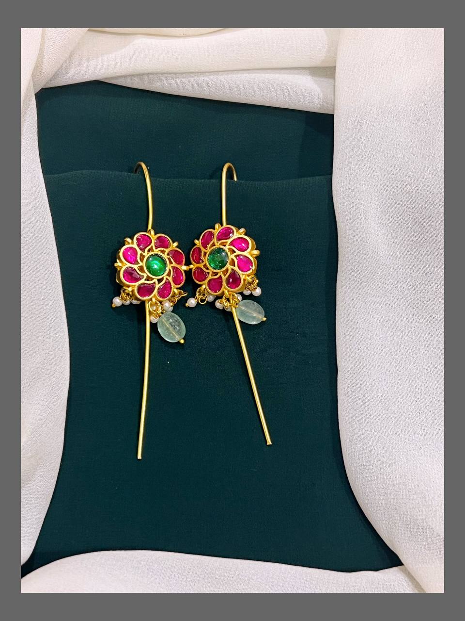 These Antique White Stone Flower Earrings in Kundan craftsmanship blend timeless elegance with delicate floral design. Perfect for adding a graceful touch to any outfit, their intricate detailing highlights traditional artistry while offering a subtle, refined sparkle. Ideal for special occasions or everyday wear, they bring a charming and supportive presence to your jewelry collection.