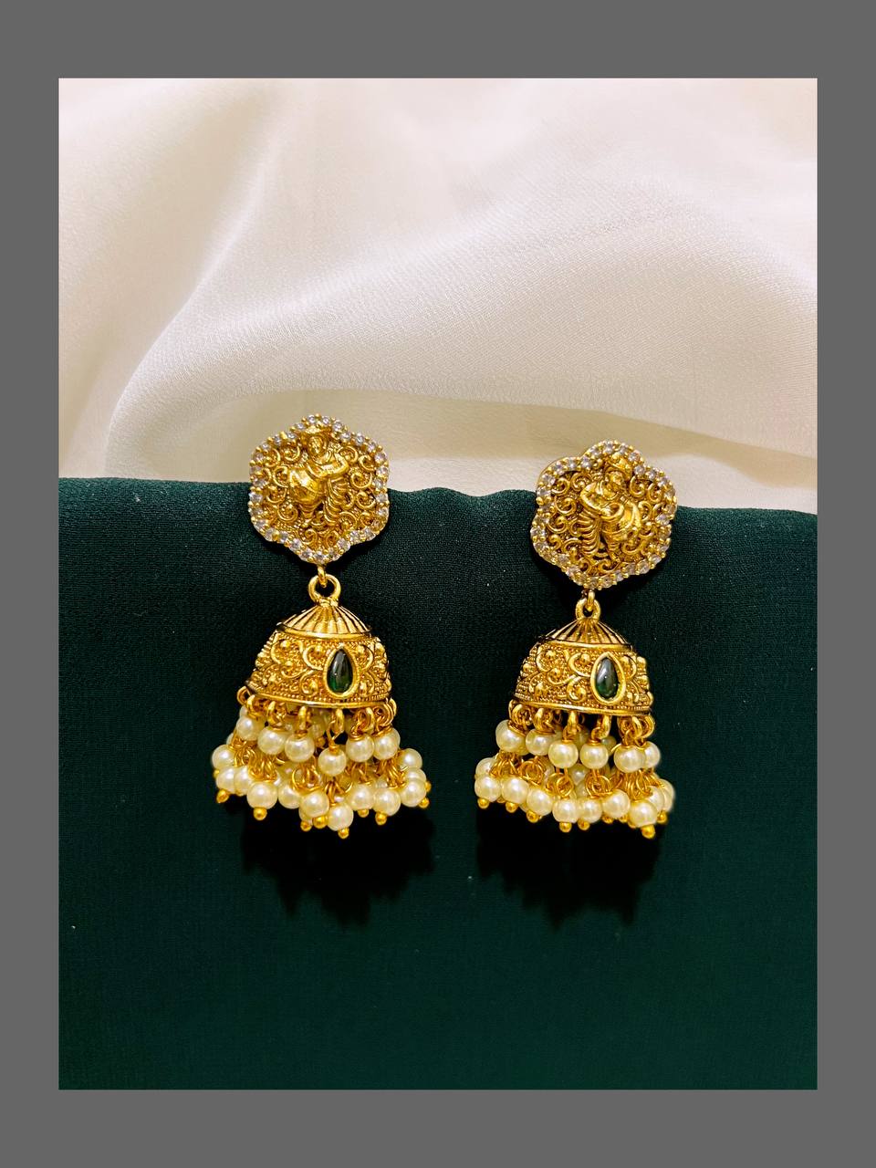 Add a touch of timeless charm to your look with these Beautiful Antique Jhumkis in Nakshi design. Their intricate craftsmanship and vintage appeal make them perfect for adding a playful sparkle to any outfit. Lightweight and eye-catching, these earrings bring a delightful blend of tradition and fun to your jewelry collection
