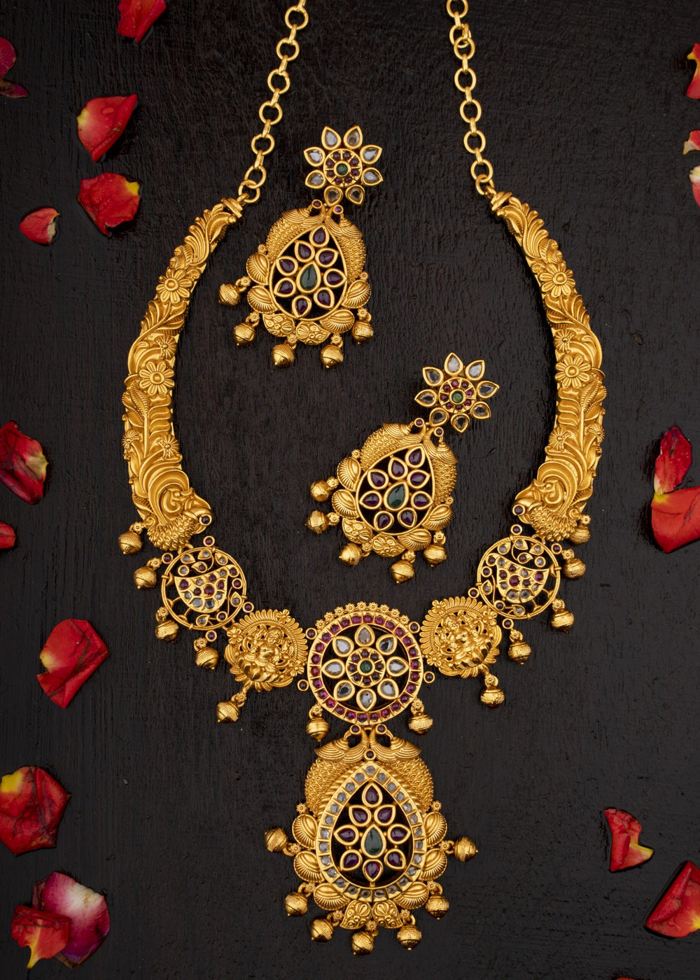 Beautiful Antique Finish Kante Set with kempus and CZ stone with pair of earrings Earring Back Side :- Push Button Polish :- Antique gold