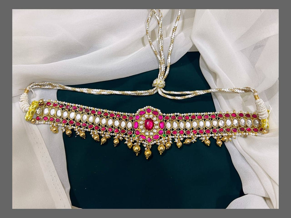 This elegant Kundan choker combines traditional craftsmanship with timeless beauty. Its intricate design enhances any outfit, making it perfect for special occasions. Comfortable to wear and lightweight, it adds a touch of sophistication that complements your natural charm effortlessly.