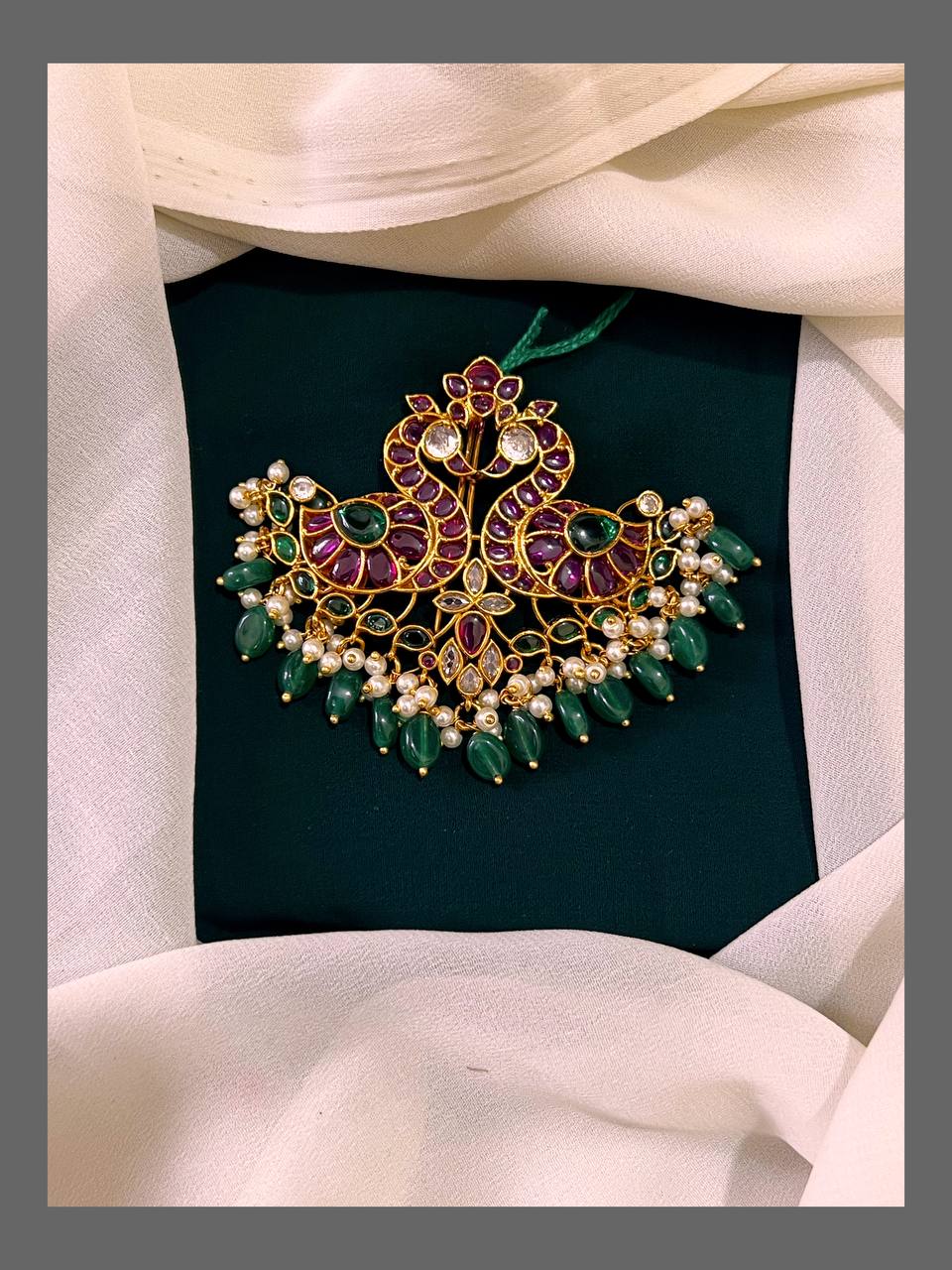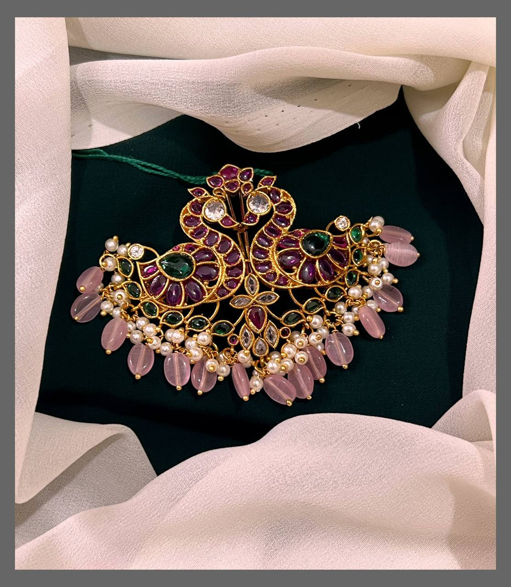Elevate your traditional look with the Beautiful Double Swan Jada Billa - HA0062. This elegant hair accessory features intricately designed twin swans, adding a graceful touch to your hairstyle. Perfect for special occasions, it enhances your ensemble with timeless charm and delicate craftsmanship. Enjoy a secure fit and stunning detail that complements your festive or wedding attire with ease.