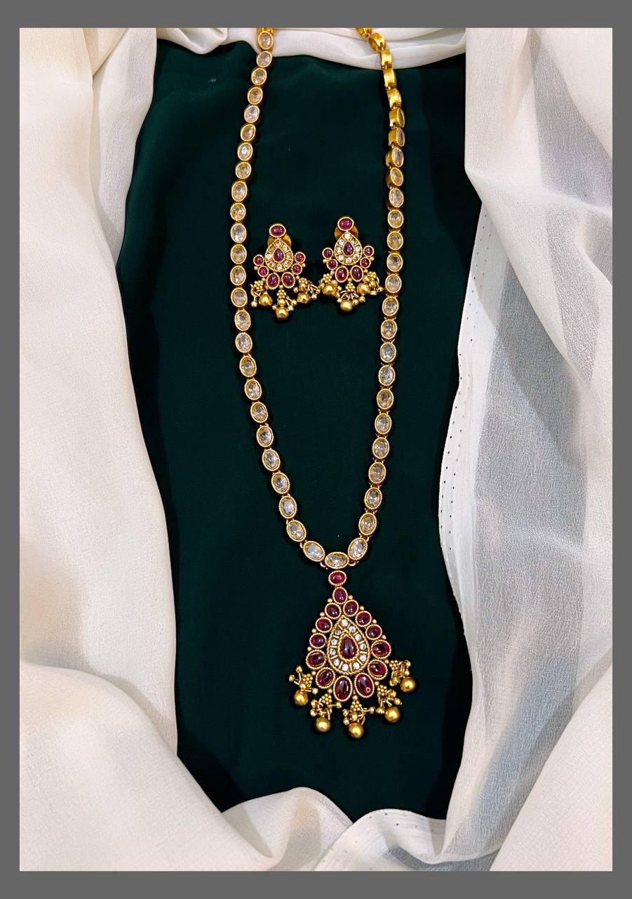 Add a touch of sparkle and tradition to your look with this beautiful Kundan necklace and pendant set. Perfect for celebrations or just because, its intricate design brings a playful charm that brightens any outfit. Let this dazzling piece be your new favorite statement!