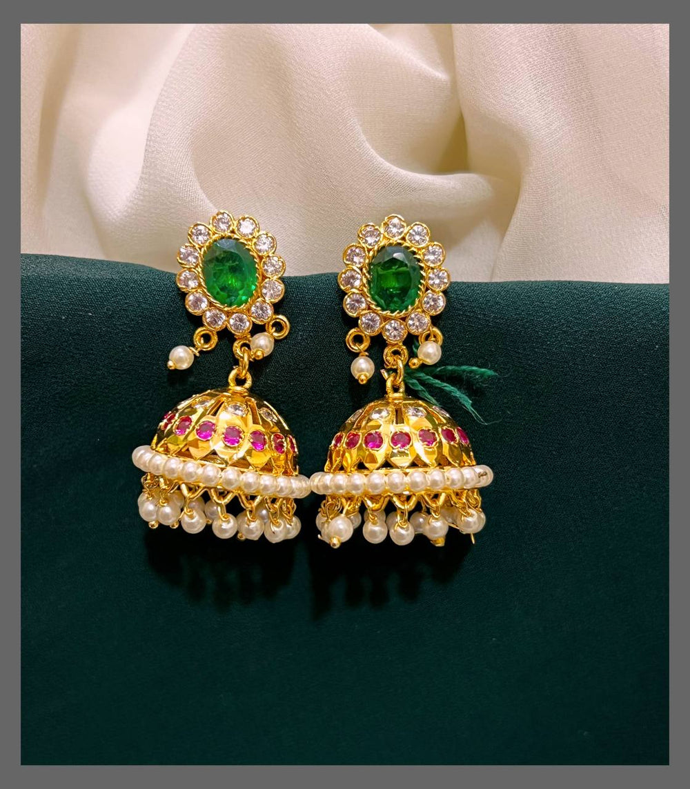 Enhance your traditional look with this beautiful jhumki adorned with delicate small white pearls. Its elegant design adds a touch of timeless charm, perfect for festive occasions or daily wear. Lightweight and comfortable, it complements a variety of outfits while providing a graceful, sophisticated appearance.