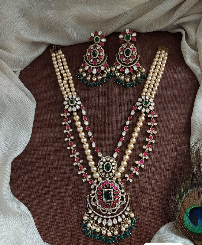 This Beautiful Kundan Pearl Haram combines traditional craftsmanship with elegant design, featuring lustrous pearls and intricate kundan work. Perfect for enhancing your festive or special occasion attire, it adds a touch of timeless grace and sophistication to your look. Comfortable to wear and designed to complement a variety of outfits, this haram is a valuable addition to your jewelry collection.
