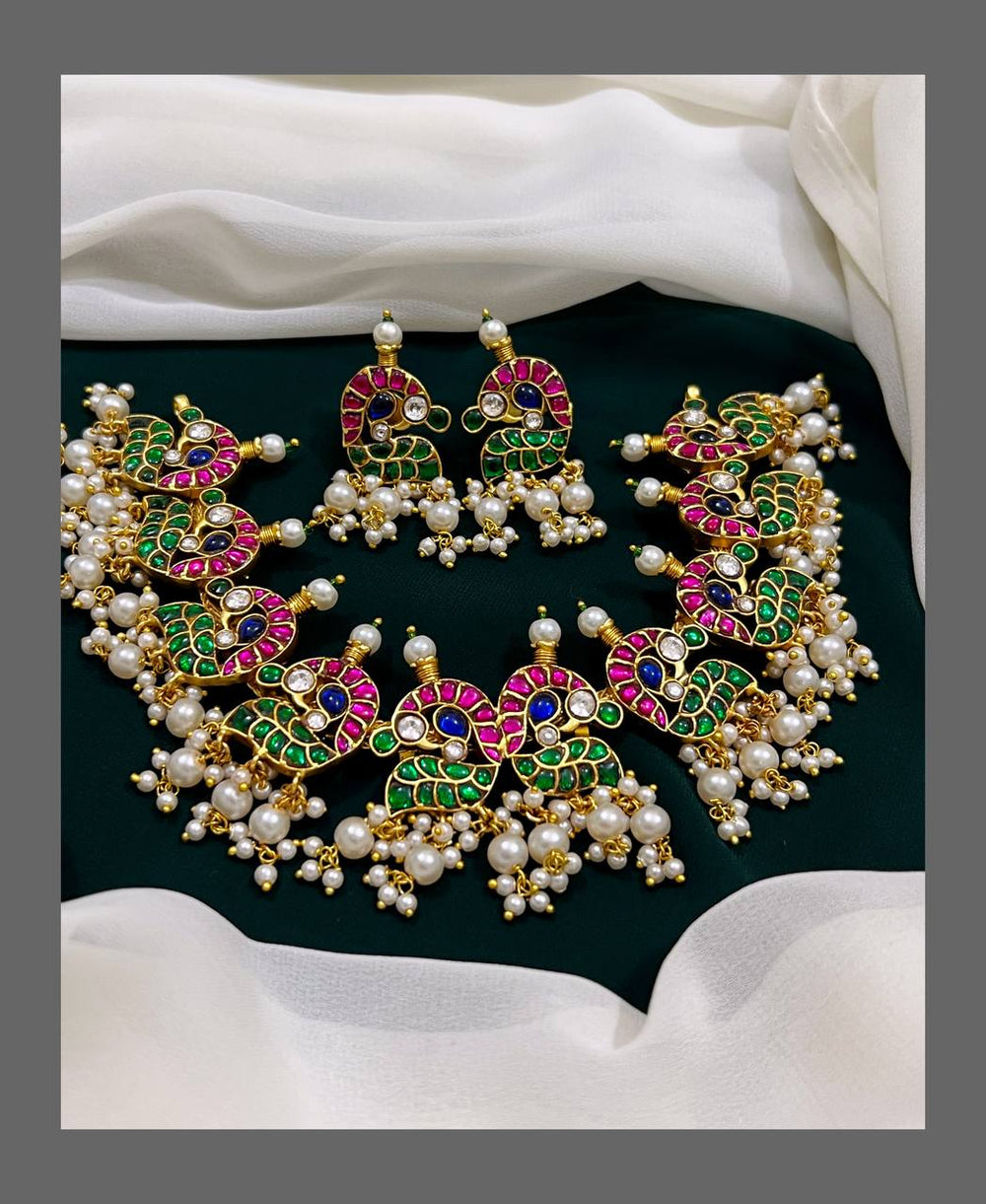 This stunning multi-Peacock in Kundan necklace (KN00221) is a true work of art. Crafted with precision and attention to detail, this piece showcases a beautiful mix of colors and intricate designs. Bring elegance and sophistication to any outfit with this luxurious necklace.
