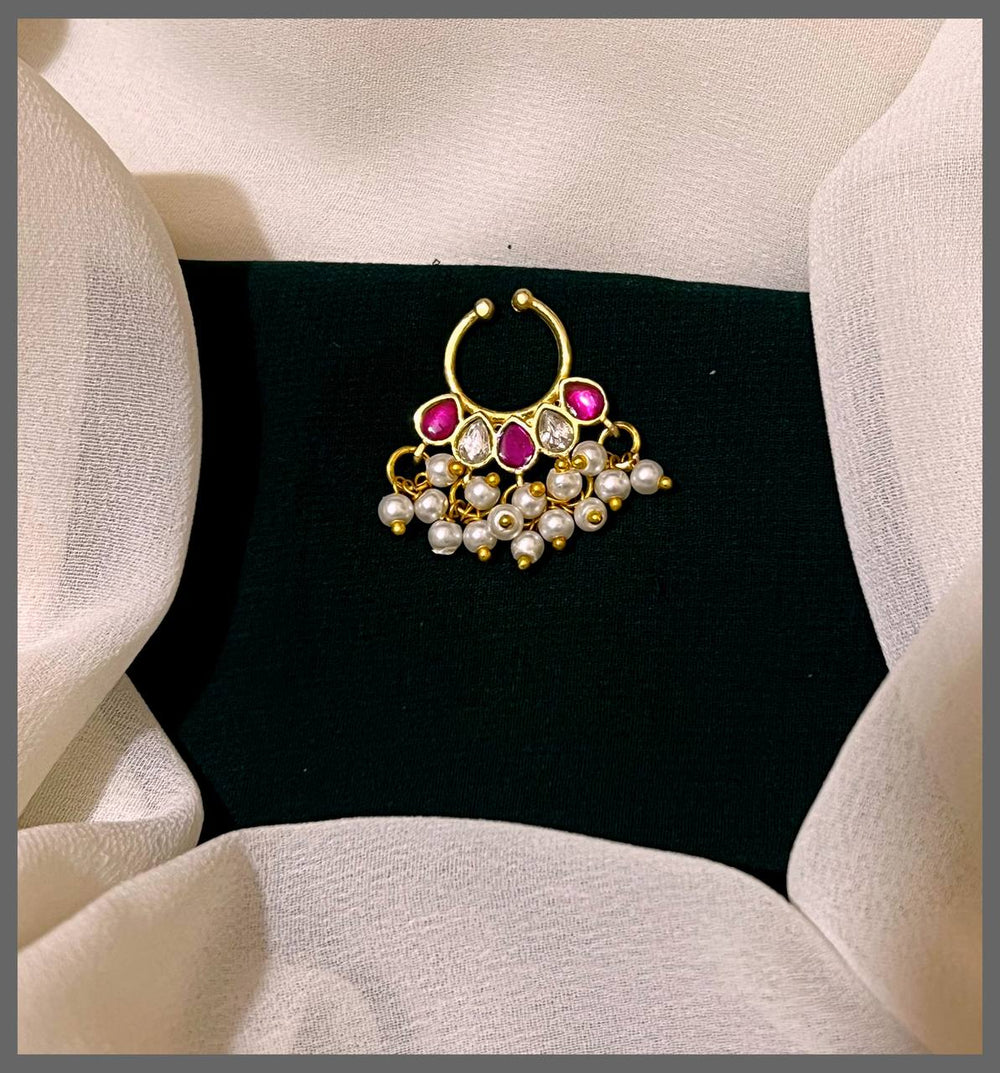 Enhance your traditional look with this Beautiful Multicolor Nose Ring NR0037. Featuring vibrant, carefully chosen colors, this nose ring adds a festive and elegant touch to your style. Its lightweight design ensures comfortable wear throughout the day, making it perfect for both special occasions and daily use. A charming accessory that celebrates color and tradition with grace.
