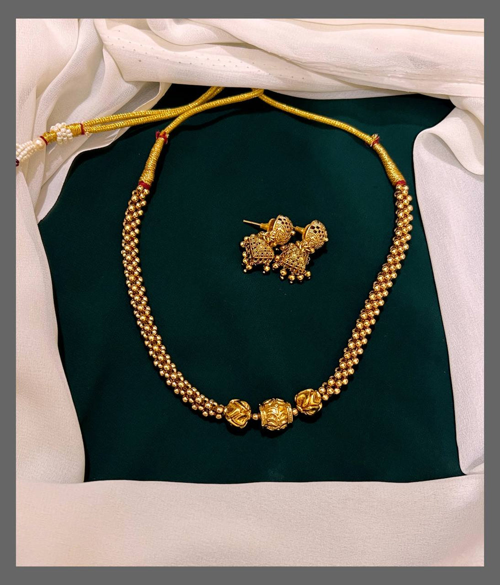 This Beautiful Nakshi Ball Necklace (NN00263) features intricate craftsmanship that highlights traditional artistry. Designed to enrich your ethnic wardrobe, this necklace adds a graceful and cultured touch to your look. Perfect for special occasions, it enhances your elegance while reflecting timeless beauty and charm in every detail.