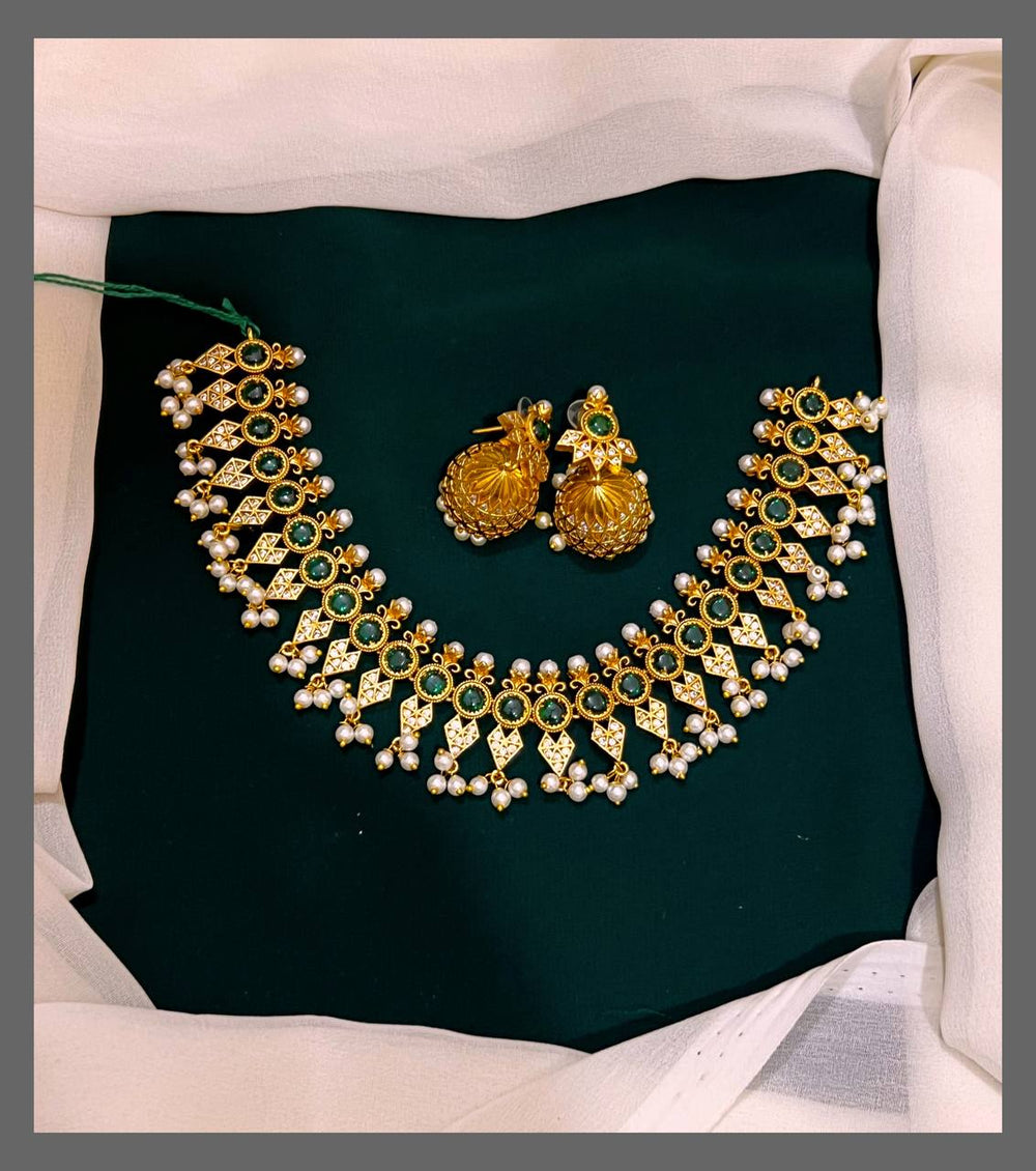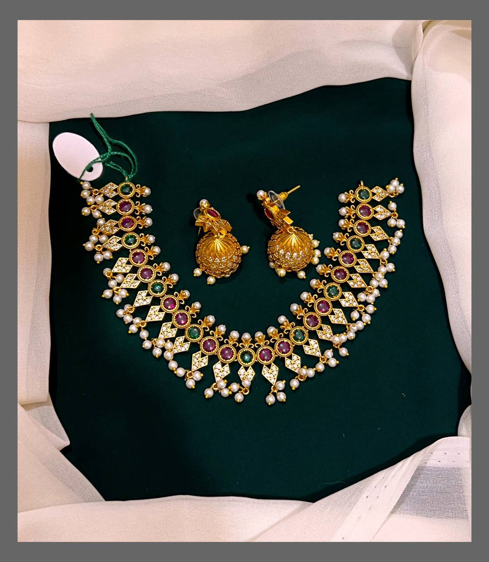 Discover elegance with this Beautiful Nakshi Necklace adorned with lustrous pearls. Crafted to enhance your traditional attire, its intricate craftsmanship offers a timeless appeal that complements any special occasion. Designed for comfort and style, this necklace makes a perfect addition to your jewelry collection, bringing grace and charm to your look.