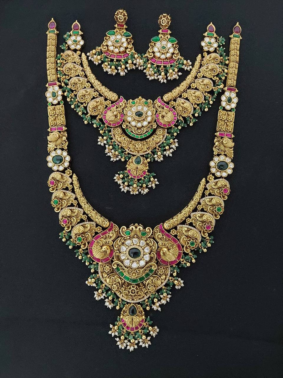 Celebrate your special day with the Stunning Beautiful Peacock Bridal Combo - BC008. This exquisite set features elegant peacock-inspired designs that add a touch of grace and tradition to your bridal look. Carefully crafted to complement your wedding ensemble, it offers timeless beauty and a perfect blend of style and cultural charm. Make your moments unforgettable with this unique and elegant bridal combo.
