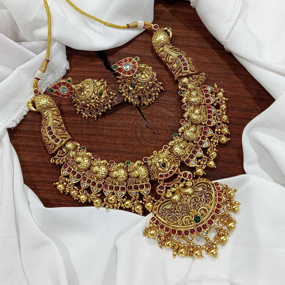 Elevate your accessory collection with this exquisite Beautiful Peacock in Naskhi Necklace with Earring adorned with intricate NAKSHI craftsmanship. This stunning piece combines elegance and tradition, making it a perfect addition to any outfit, whether for a special occasion or everyday wear.
