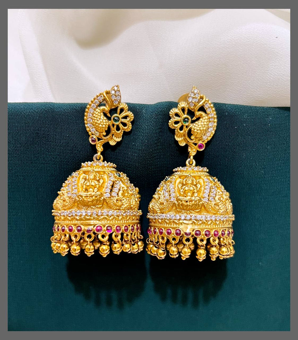 Add a splash of charm to your look with these Beautiful Peacock Jhumki Earrings in Nakshi design. Their intricate peacock motif and delicate craftsmanship bring a playful elegance that’s perfect for any festive occasion or casual outing. Lightweight and eye-catching, these earrings promise to keep you twirling with joy all day long!