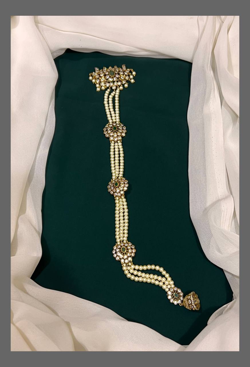 Enhance your traditional look with this Beautiful Pearl Jada Billa - HA0078. Featuring meticulously arranged pearls, this elegant accessory adds a delicate charm to your hair, perfect for special occasions and festive events. Its lightweight design ensures comfortable wear while accentuating your hairstyle with timeless grace.