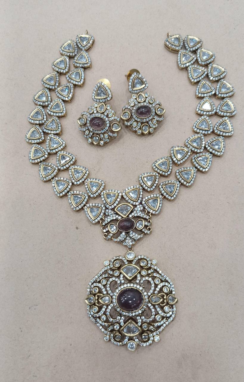 This exquisite Victorian necklace boasts a stunning purple gemstone, adding a touch of regal elegance to any outfit. Hand-crafted with meticulous attention to detail, this necklace is truly a work of art. Elevate your style with this beautiful piece.