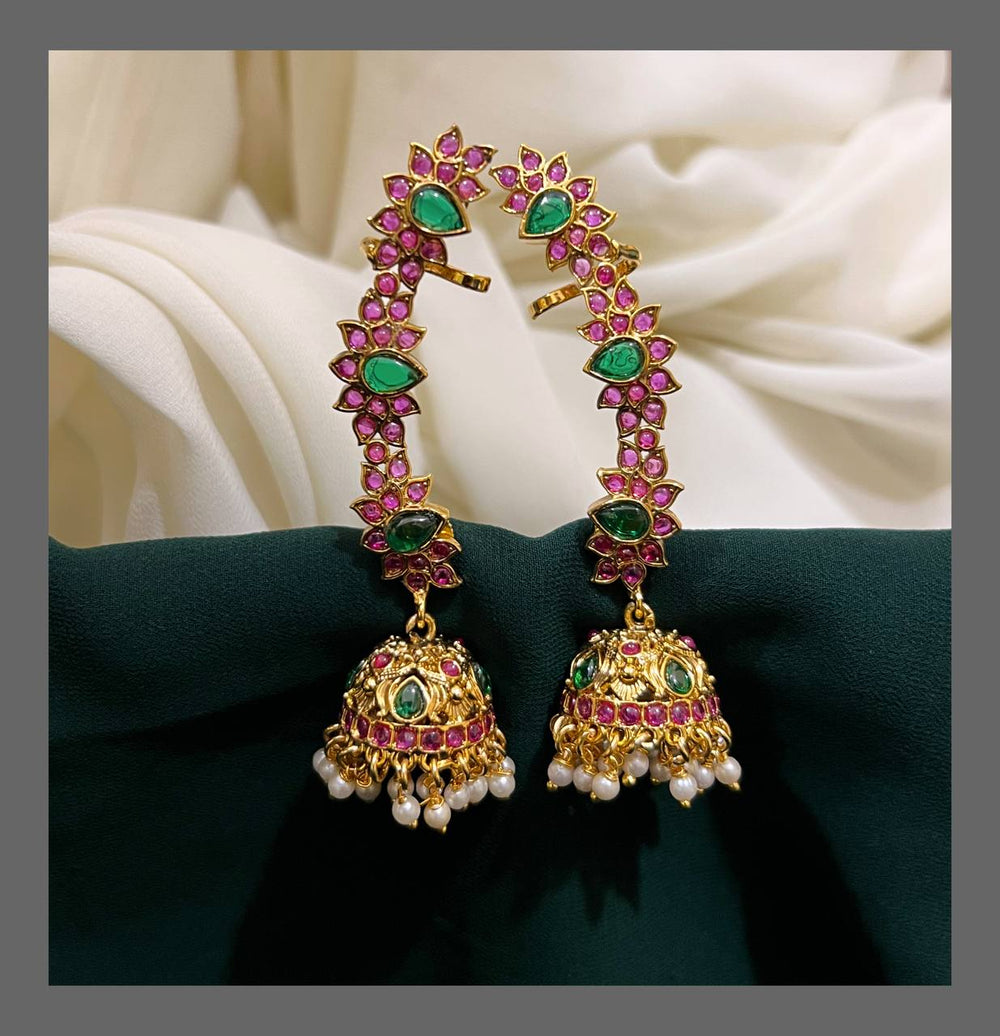 Elevate your style with this Beautiful Ruby Earring Cuff crafted in exquisite Kundan work. The rich ruby stones add a touch of elegance, while the intricate Kundan design ensures a timeless appeal. Perfect for special occasions or adding a sophisticated flair to everyday wear, this earring cuff offers both comfort and charm. A graceful accessory that complements any outfit with ease.