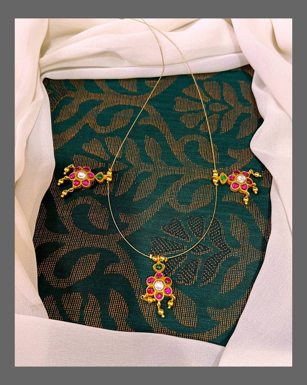 Elevate your elegance with this Beautiful Ruby Flower Invisible Chain crafted in exquisite Kundan work. The vibrant ruby petals delicately arranged as a flower bring a touch of grace and charm suitable for any occasion. Its invisible chain design ensures a seamless, sophisticated look that complements your style effortlessly. Perfect for adding a subtle yet striking statement to your jewelry collection.