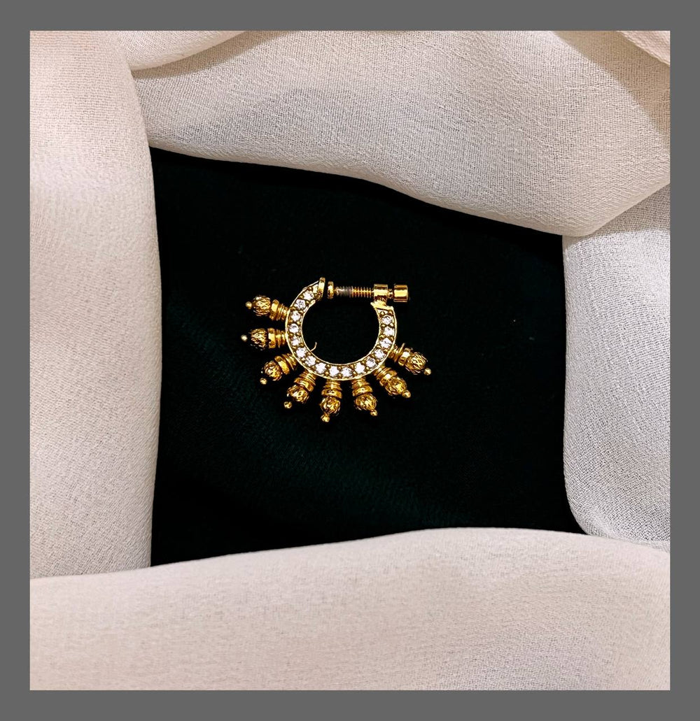 This elegant nose ring showcases sparkling kundan stones that add a touch of traditional charm to any outfit. Its delicate design ensures comfort while enhancing your natural beauty, making it perfect for both everyday wear and special occasions. Crafted to complement your style with subtle sophistication, this piece brings timeless allure to your jewelry collection.