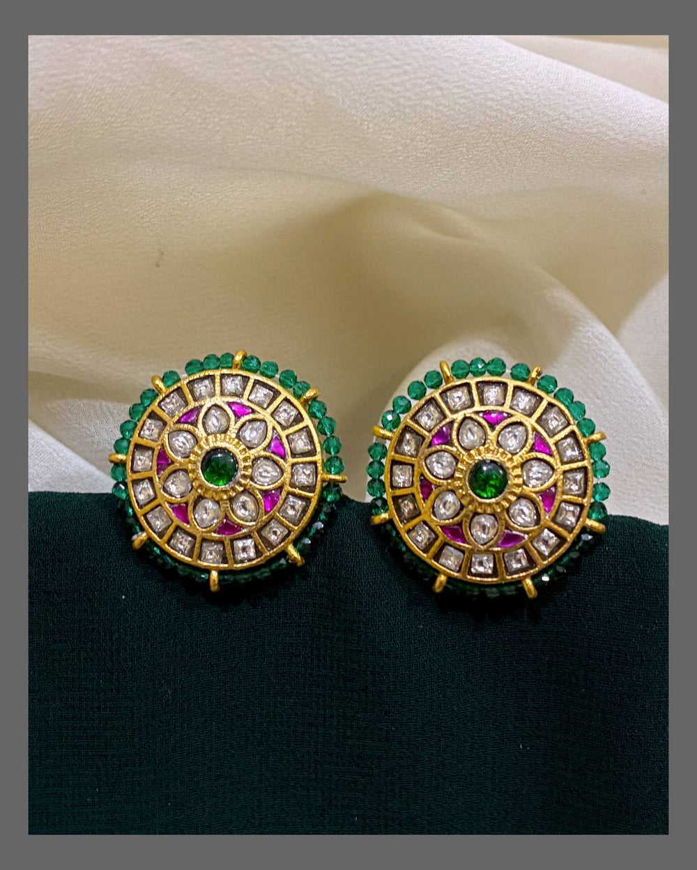Add a touch of charm to your look with these Beautiful Stud Earrings in Nakshi design. Delicately crafted, they bring a playful sparkle to any outfit, perfect for brightening your day or adding a fun twist to your style. Light and comfortable, these studs are your new go-to for effortless elegance with a joyful vibe.