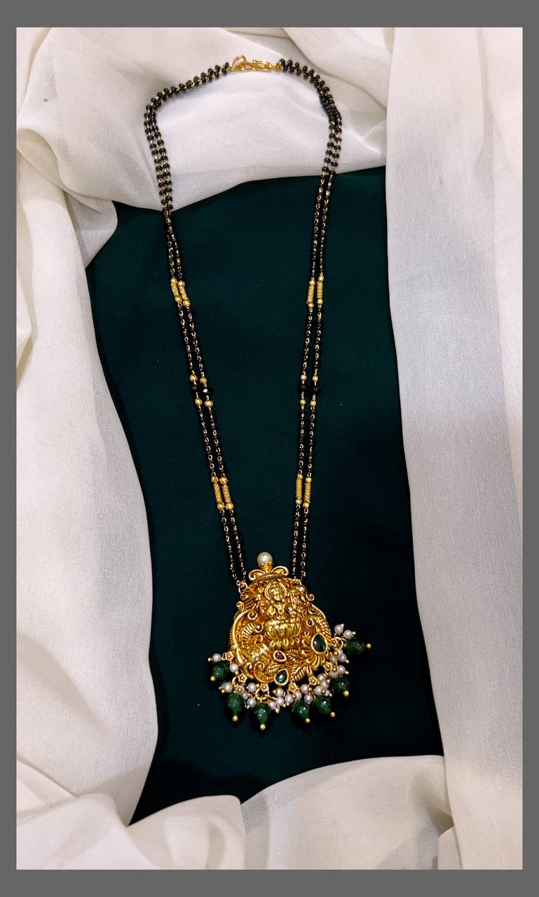 Enhance your traditional collection with this elegant Black Beads Haram featuring a beautifully crafted Lakshmi pendant. Designed to symbolize prosperity and protection, this necklace complements both casual and festive attire. Its durable beads ensure long-lasting wear, making it a meaningful addition to your jewelry box. Perfect for everyday blessings and special occasions alike.