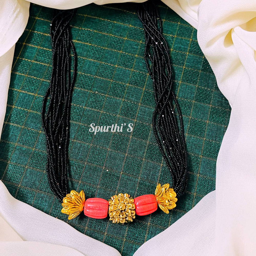 Black Beads Necklace Features: Color: Yellow, Black, Pink Style: Tribal Pendant Material: Black Beads Earrings: No Experience: Lightweight and comfortable to wear Usage: Everyday Celebration use