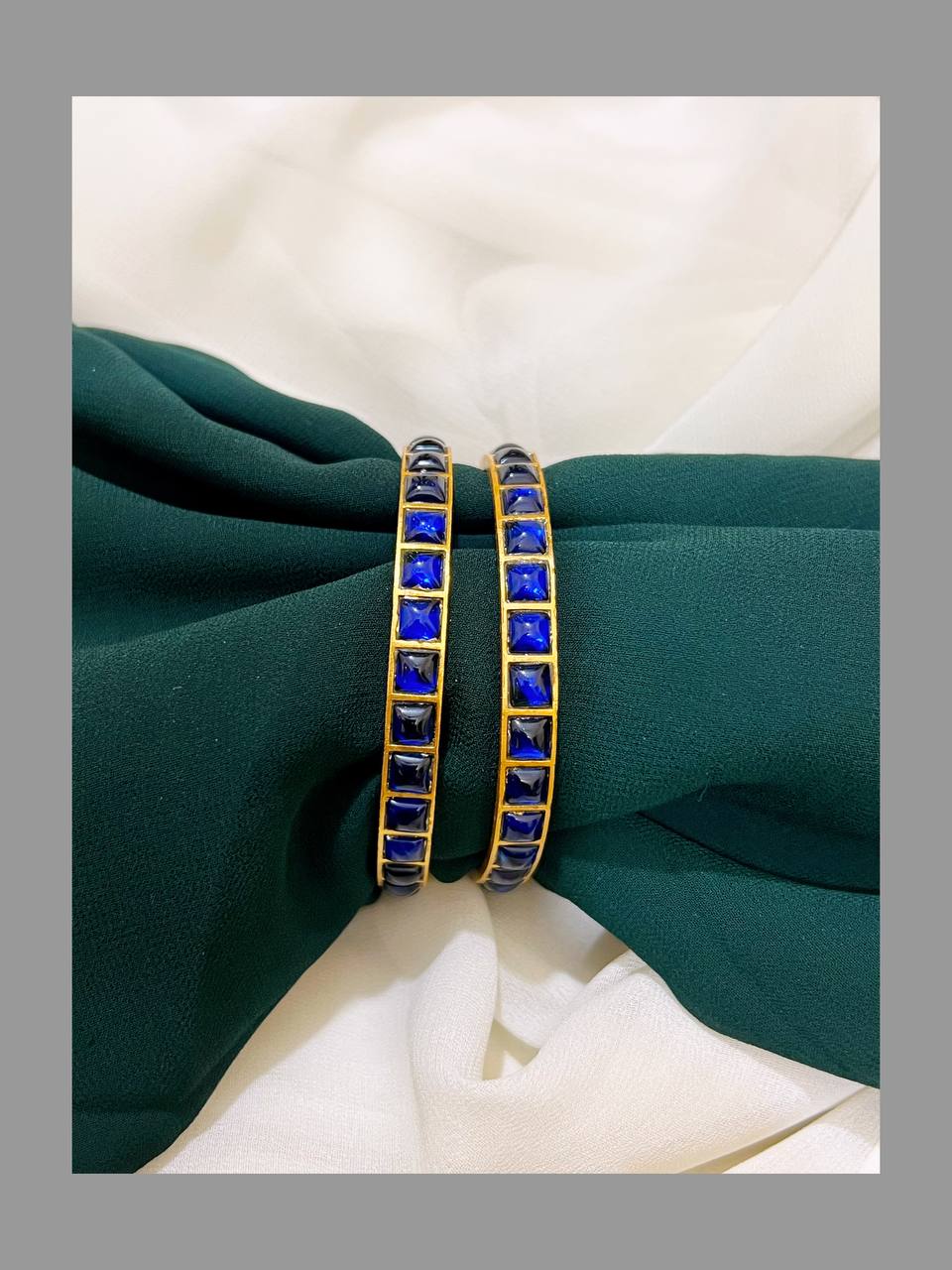 Elevate your style with our stunning Blue Kundan Bangles! Made with precision and attention to detail, these bangles feature traditional Indian kundan work in a beautiful blue hue. Add a touch of elegance to any outfit with these luxurious bangles. Perfect for weddings, parties, and special occasions.