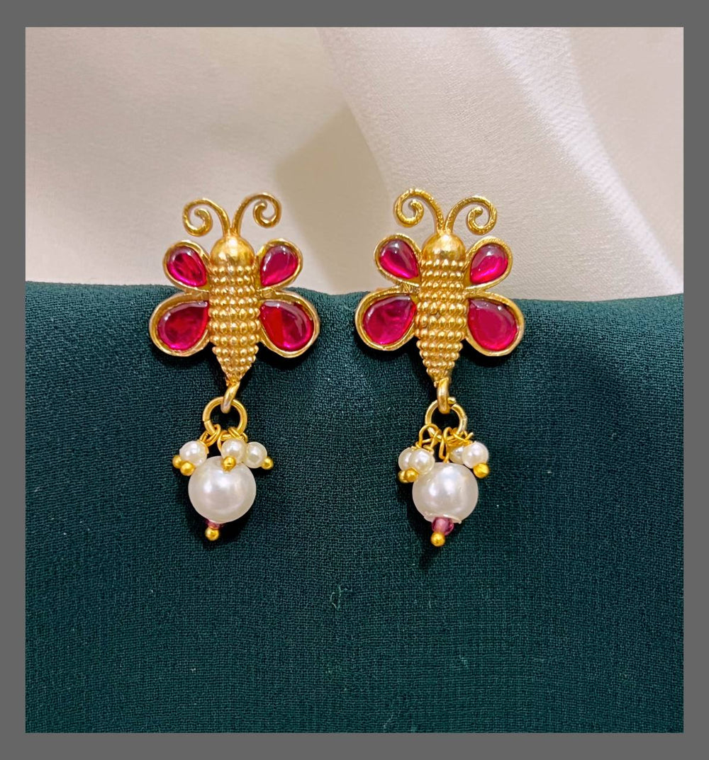 These Butterfly Stud Earrings in Kundan offer a delicate and elegant touch to your jewelry collection. Crafted with precision, their intricate design highlights the timeless beauty of Kundan work, making them perfect for both everyday wear and special occasions. Lightweight and comfortable, they add a subtle sparkle that complements any outfit with grace.