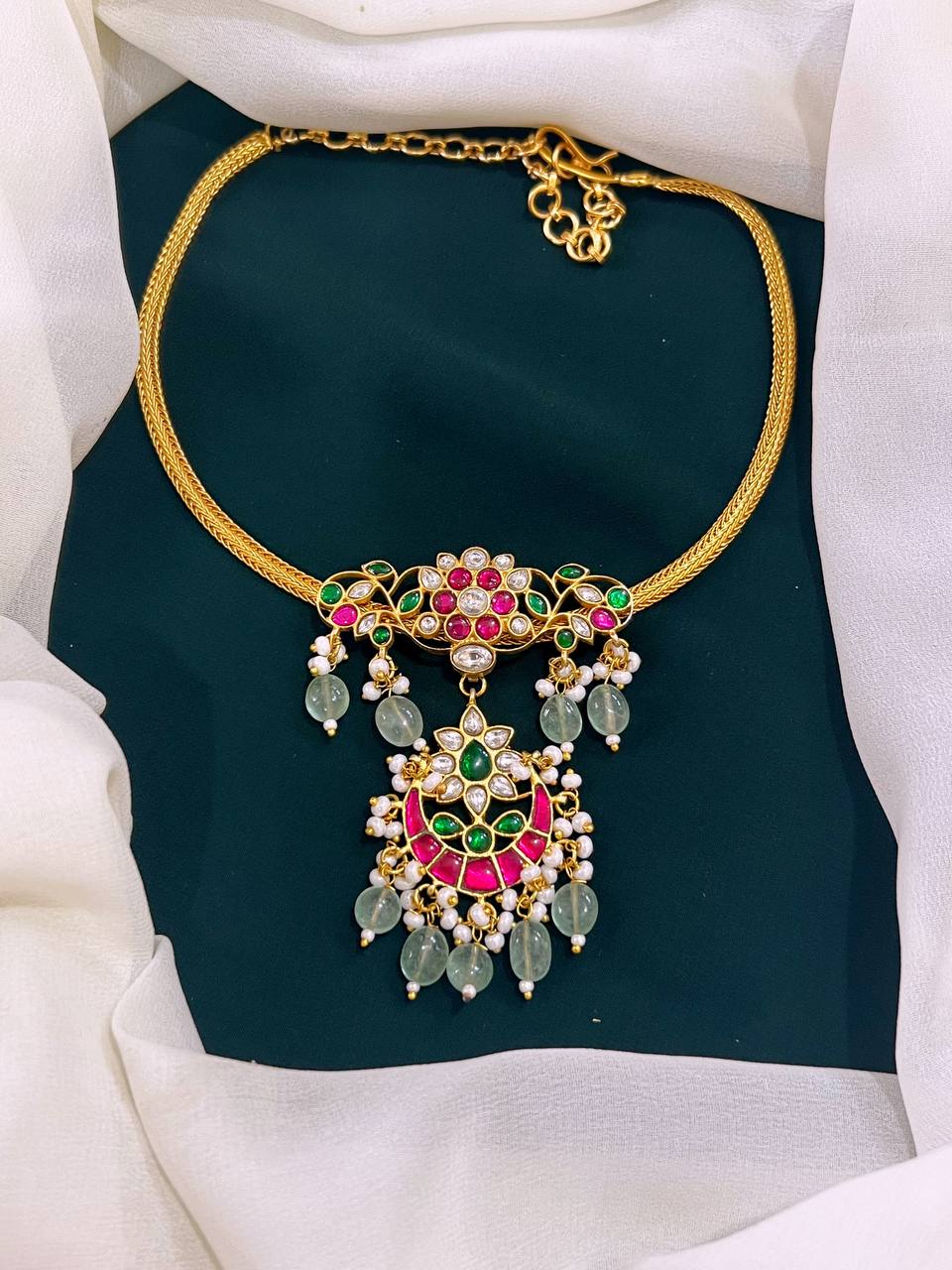 Elevate your accessory collection with this exquisite Chand bail Flower Jadav Kundan Multi Necklace adorned with intricate JADAV KUNDAN workmanship. This stunning piece combines elegance and tradition, making it a perfect addition to any outfit, whether for a special occasion or everyday wear.