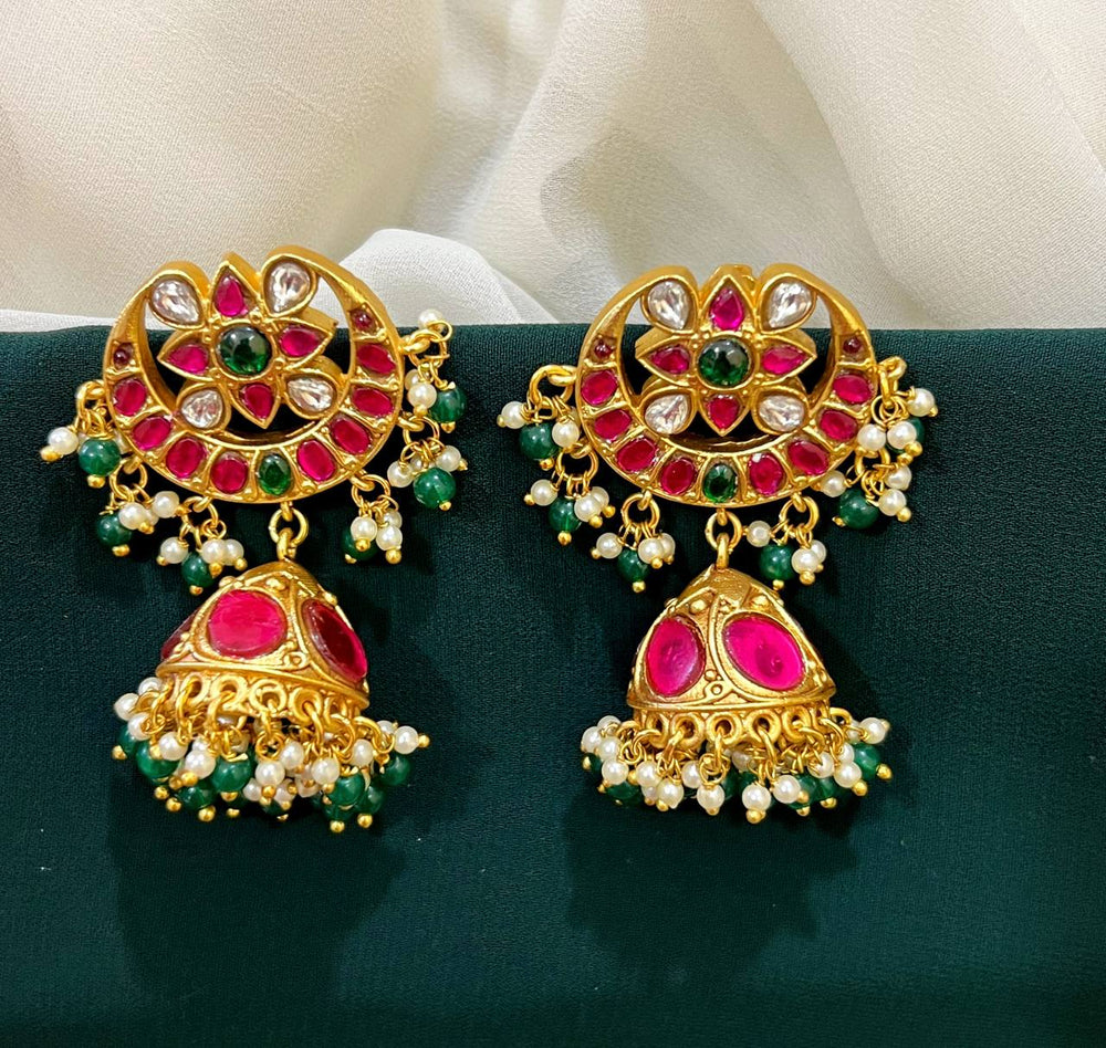 Beautiful Chand Bali Jhumki's with Multi Color Kundan Earrings
