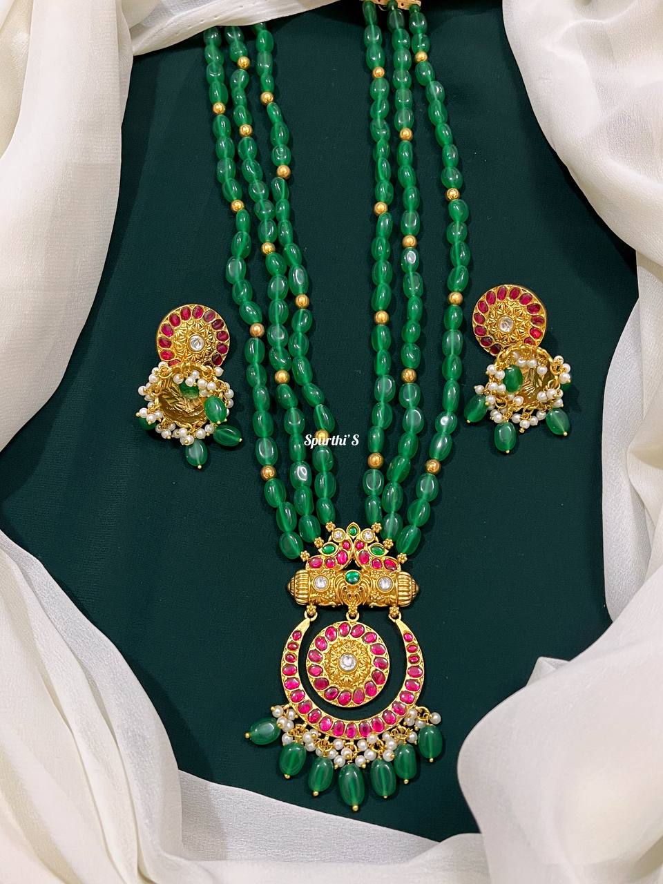 Elevate your accessory collection with this exquisite Chand bali Pink Haram in Jadau Kundan adorned with intricate JADAV KUNDAN workmanship. This stunning piece combines elegance and tradition, making it a perfect addition to any outfit, whether for a special occasion or everyday wear.