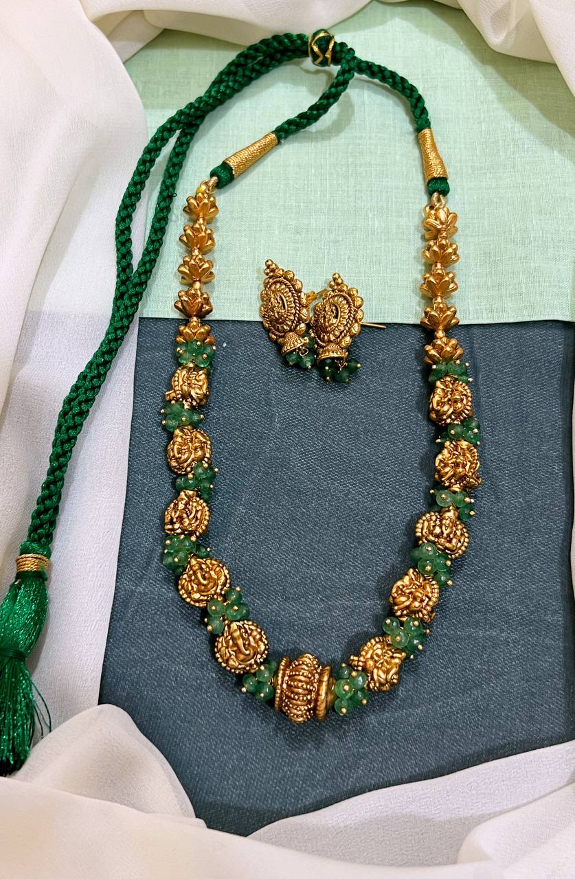 Elevate your accessory collection with this exquisite Emerald in Naskhi Necklace adorned with intricate NAKSHI craftsmanship. This stunning piece combines elegance and tradition, making it a perfect addition to any outfit, whether for a special occasion or everyday wear.