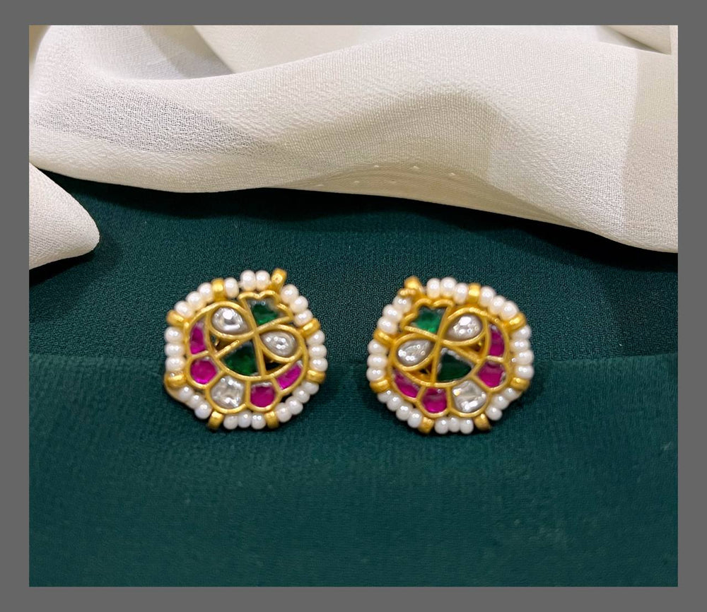 These Cute Kundan Studs with back screw closure offer a secure and comfortable fit, perfect for everyday wear. Their elegant design adds a subtle sparkle to any outfit, making them a versatile accessory for both casual and special occasions. Crafted to enhance your style while ensuring durability, these studs are a charming addition to your jewelry collection.