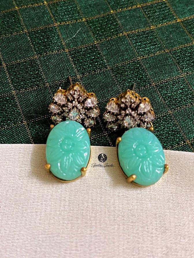 Features: Color: Cyan Style: Tops Material: American Diamond Earrings Backside: Push Back Experience: Lightweight and comfortable to wear Usage: Everyday Celebration use