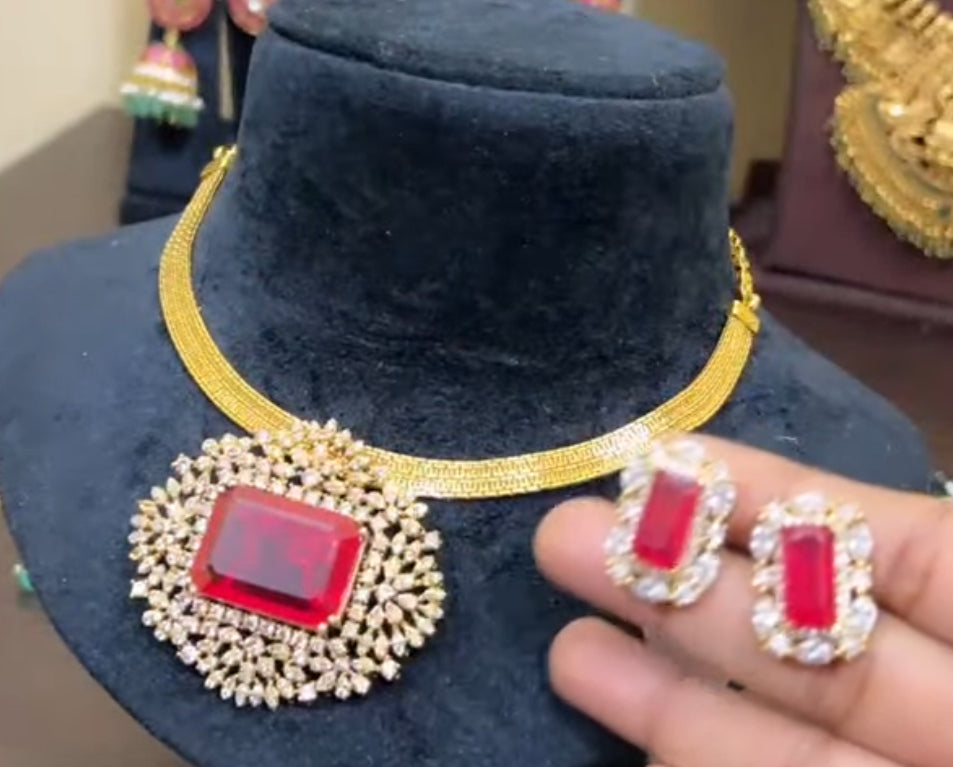 Beautiful doublet pendant with Daimond cut stones and a chain with pair of earirngs
