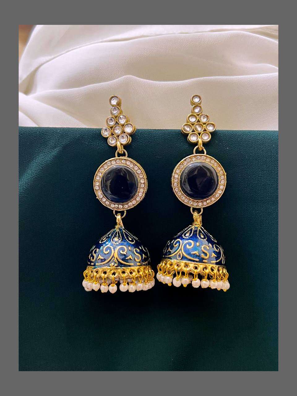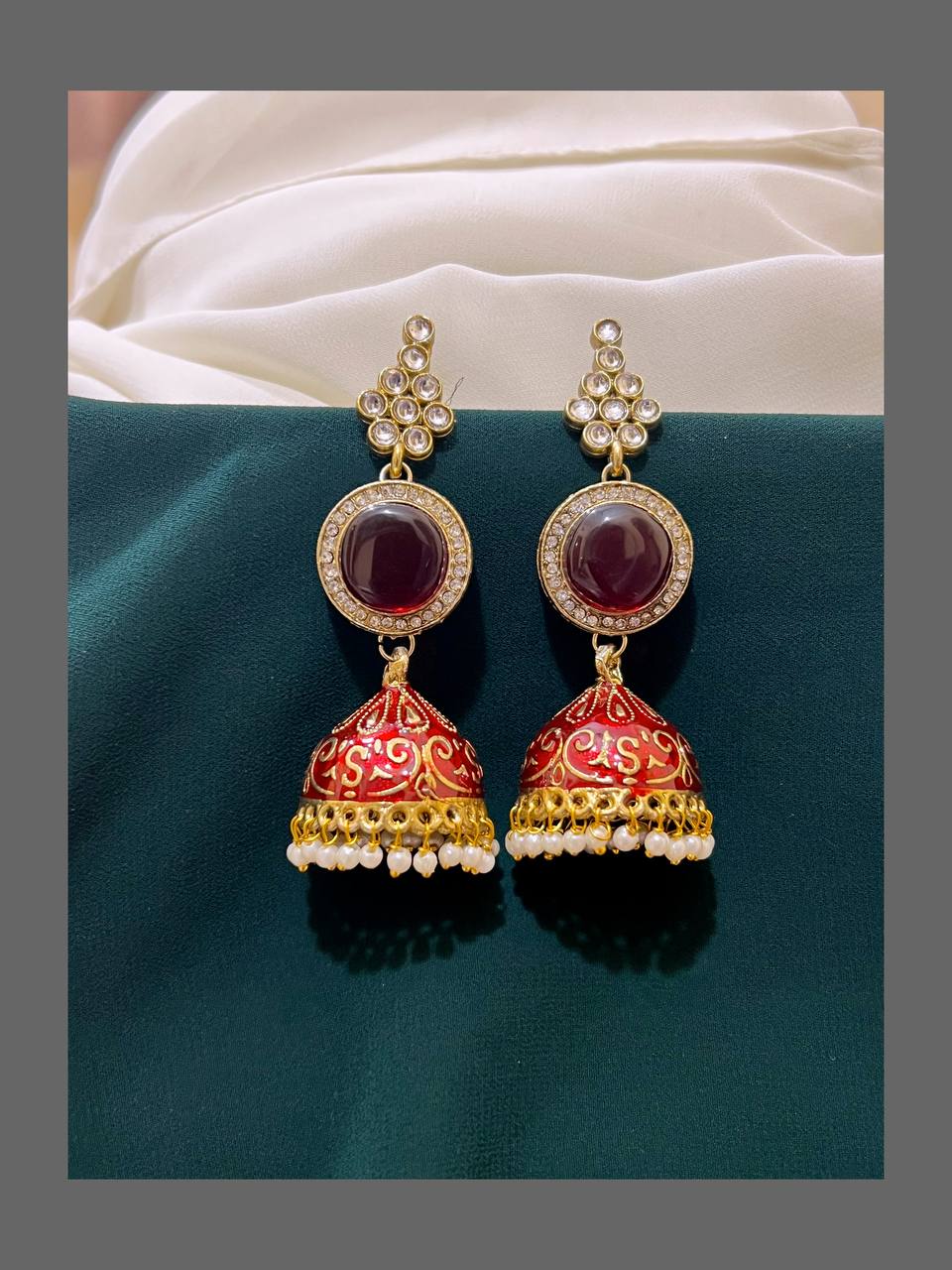 Meticulously crafted designer jhumkis featuring intricate traditional patterns with a contemporary twist. These elegant earrings combine premium craftsmanship with lightweight wearability, making them perfect for both festive occasions and everyday sophistication. Each piece showcases the authentic artistry of Indian jewelry design.