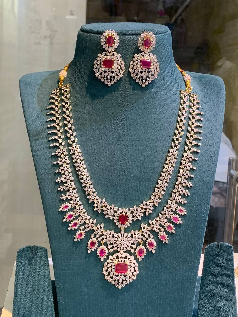Elevate your traditional attire with this exquisite Diamond Haram adorned with stunning ruby accents. The perfect blend of timeless elegance and contemporary design, this piece adds a touch of royal splendor to any celebration. Each carefully set diamond complements the rich ruby tones, creating a necklace that becomes an heirloom to treasure.