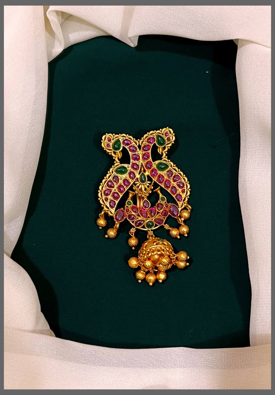 Enhance your traditional hairstyle with the Double Peacock Jada Billa - HA0091. Crafted to add elegance and charm, this ornament features beautifully detailed double peacock motifs that complement jadais perfectly. Its design supports a secure fit, making it ideal for weddings and festive occasions, ensuring you feel confident and graceful throughout your celebration.