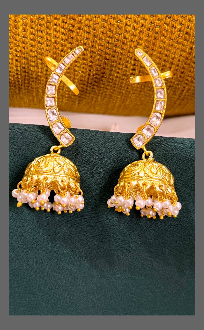 Elevate your style effortlessly with this Earcuff Jhumki in Kundan. Designed for those who appreciate both tradition and modern flair, this piece offers the intricate beauty of Kundan work while being easy to wear without piercing. Perfect for adding a touch of elegance to any outfit, it blends classic craftsmanship with contemporary convenience, making it an ideal accessory for enhancing your everyday look.