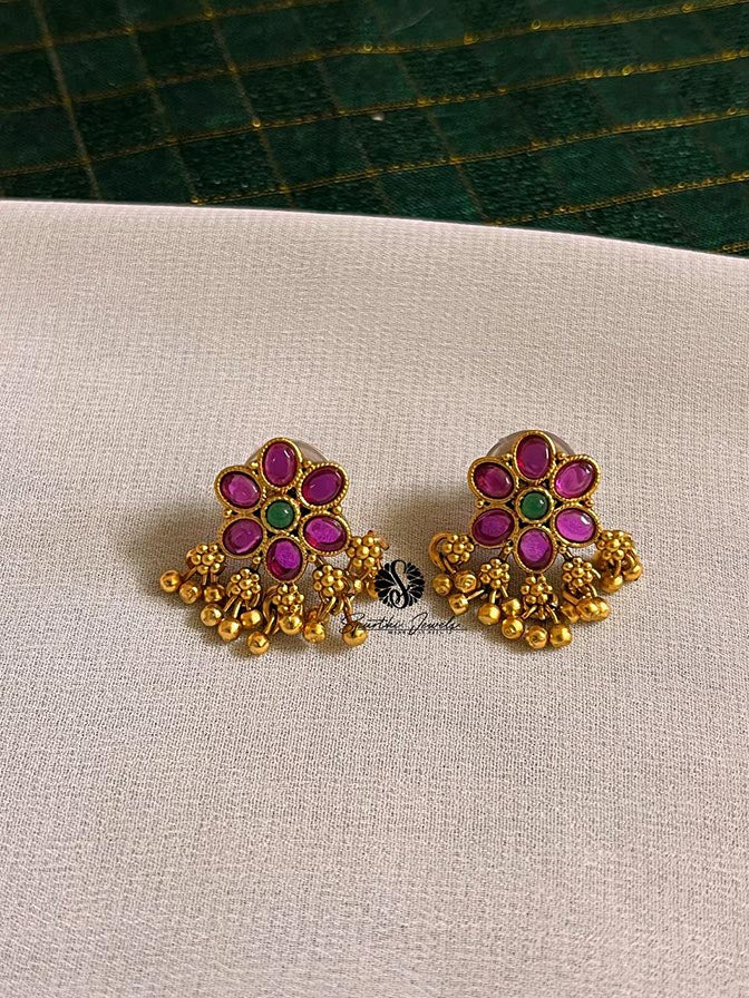 Features: Color: Ruby Style: Tops Material: Brass, Jadau Earrings Backside: Push Back Experience: Lightweight and comfortable to wear Usage: Everyday Celebration use