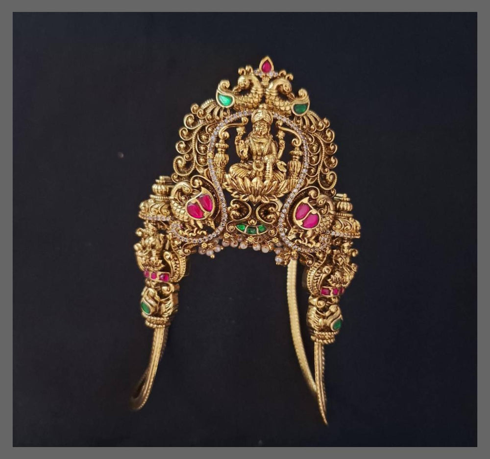 The Elegant Nakshi Jadau Vanki -VN0010 showcases intricate craftsmanship with traditional Nakshi designs and sparkling Jadau stones. This beautifully crafted armlet adds a graceful touch to any outfit, perfect for special occasions or festive celebrations. Its detailed artistry ensures you stand out with timeless elegance and cultural charm.