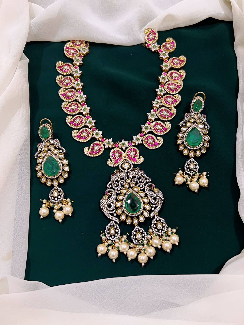 This elegant mango necklace features a beautiful Victorian pendant and a Kundan chain, creating a stunning piece of jewelry. The intricate design and high-quality materials make it an ideal accessory for any formal occasion. Perfect for those looking for a touch of sophistication and class in their ensemble.