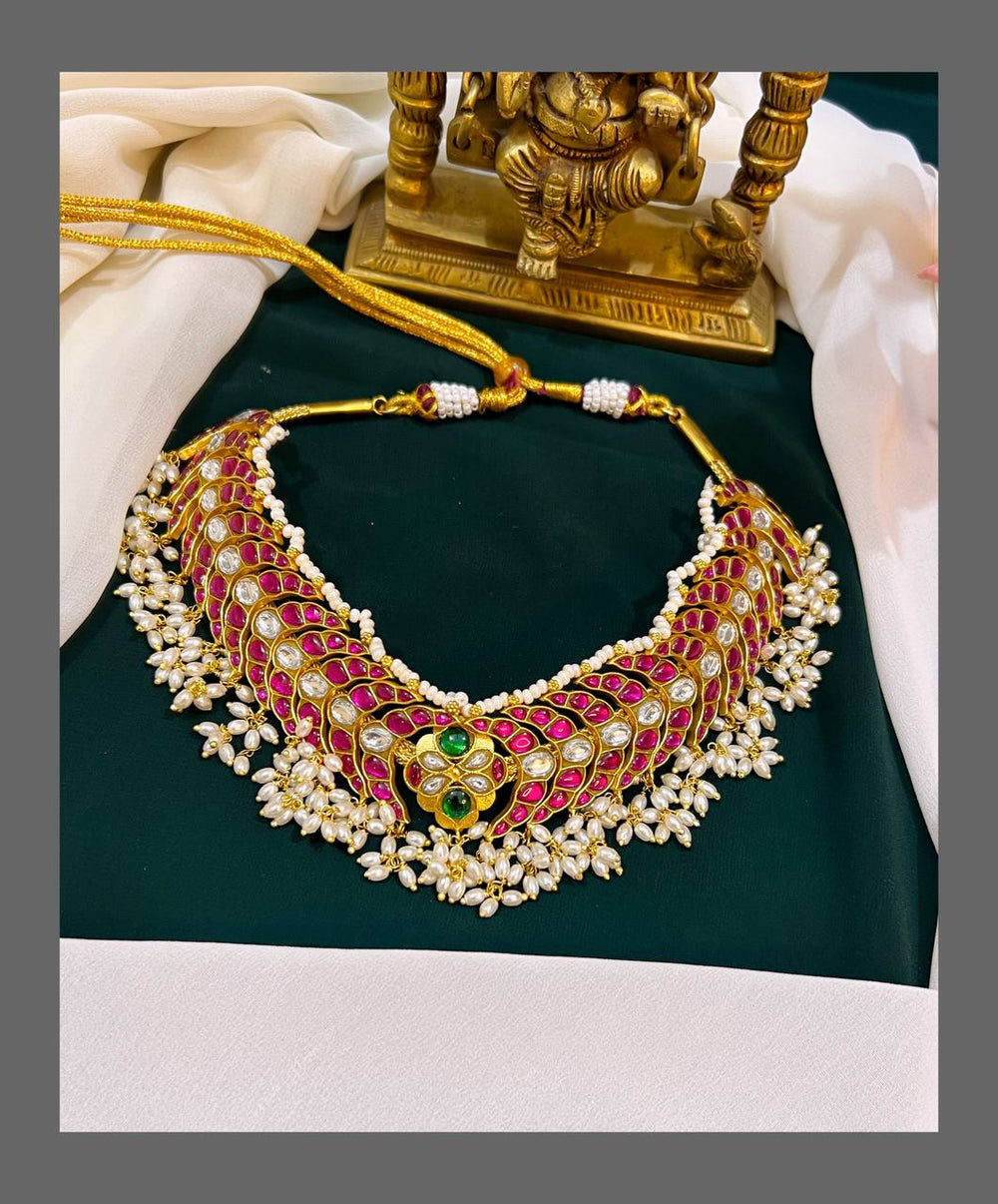 Add a touch of charm to your look with this Elegant Rice Pearl Choker in Kundan. Delicately crafted with lustrous rice pearls and sparkling kundan stones, it’s the perfect playful twist to brighten any outfit. Whether it’s a festive celebration or a casual day out, this choker brings a fun sparkle that’s sure to turn heads!