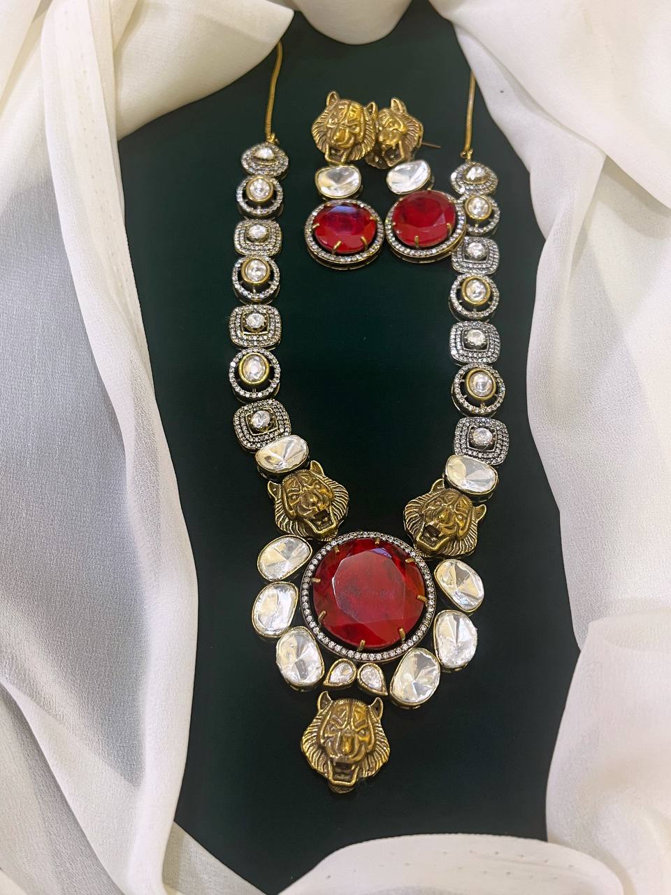Style :Victorian Haram Material: Brass, Stone, AD, White Stone With mozonite
