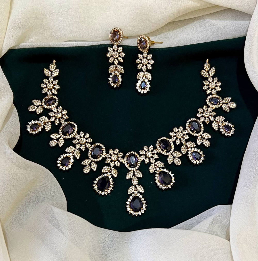Elevate your accessory collection with this exquisite purple stone Elegant Victorian Necklace with Earring adorned with intricate VICTORIAN Polish. This stunning piece combines elegance and tradition, making it a perfect addition to any outfit, whether for a special occasion or everyday wear.