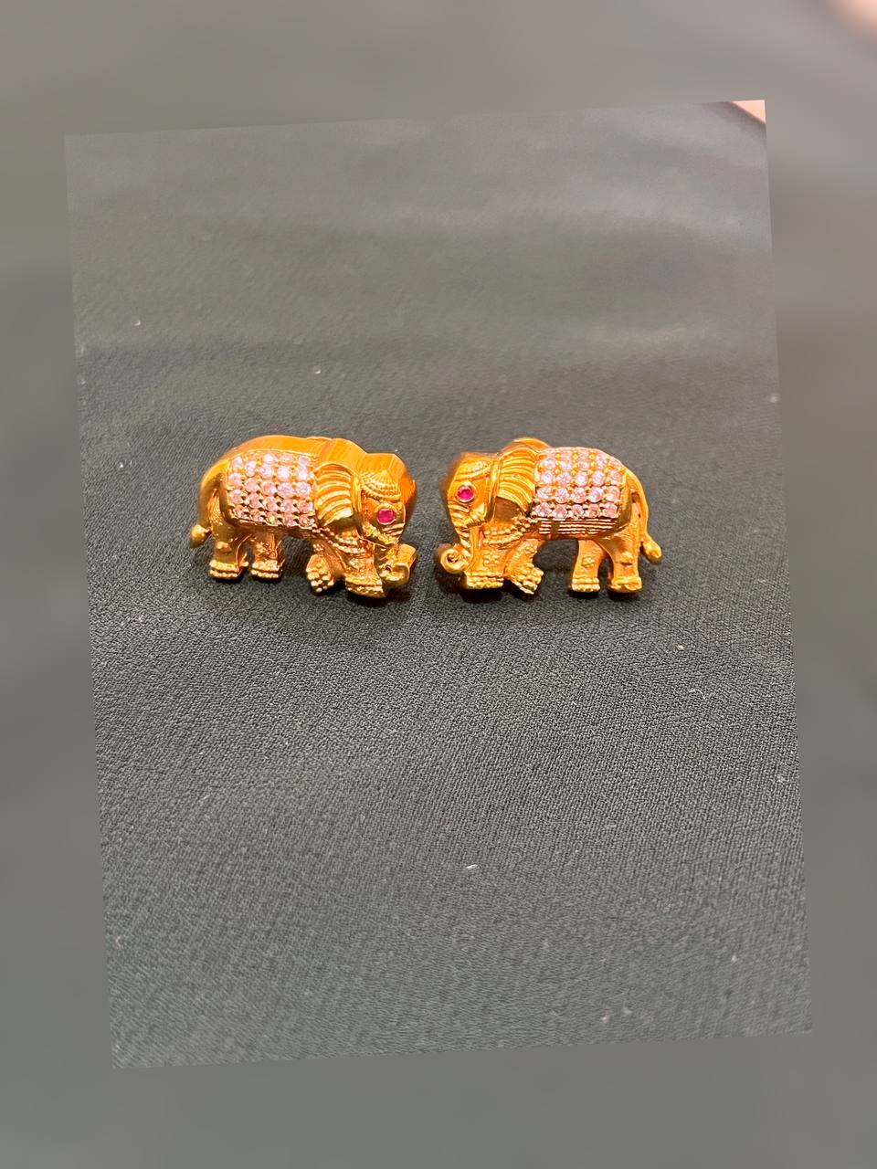 Beautiful Elephant with Gold and Ruby Nakshi Earring, Back Screw