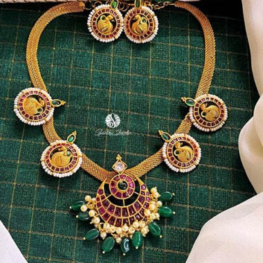 Emerald Antique Finish Necklace with Earrings